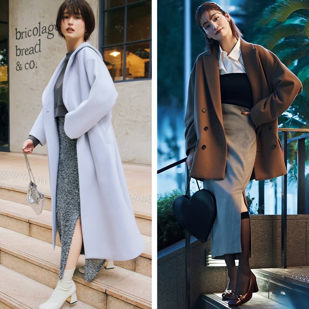 以深灰色为基调搭配薰衣草色长款大衣的微甜穿搭。休闲短款上衣与酷感亮片半身裙的异材质渐变,既增添了个性又紧跟潮流。
