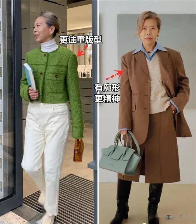 盲目地照搬年轻人穿搭特别容易暴露我们的身材缺点,而聪明的中年女人在穿衣服的时候都会更注重版型和剪裁,比如在冬季穿外套,多穿正肩、廓形,翻领元素的服饰,挺括感十足,不紧绷也不会松松垮垮的,哪怕是有赘肉、五五分身材都能给你藏起来。