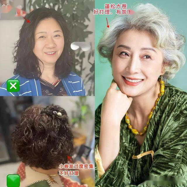 很多中年女人都喜欢烫卷发,但烫发也是有讲究的,之前就给大家说过,小卷发是最容易暴露年龄感的一种发型,自带油腻感不说,还会显得头大和脸大,我劝上年纪的女人最好避开,如果你想要尝试卷发,我更推荐大卷,这种微卷的弧度显得发量多,弧度更自然,自带氛围感。