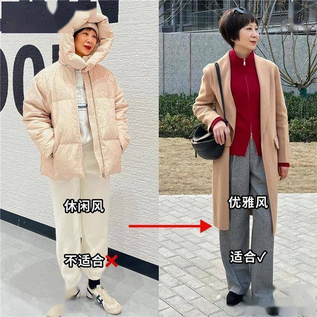 中年女人和年轻女孩相比,除了皮肤和面部的差异,身材也是有差异的,大部分中年女人都有身材发福的问题,照搬年轻人的穿搭,往往会穿出不同的效果,比如年轻人穿面包服搭配阔腿裤是松弛感,而中年女人这么穿就会有虎背熊腰的既视感。