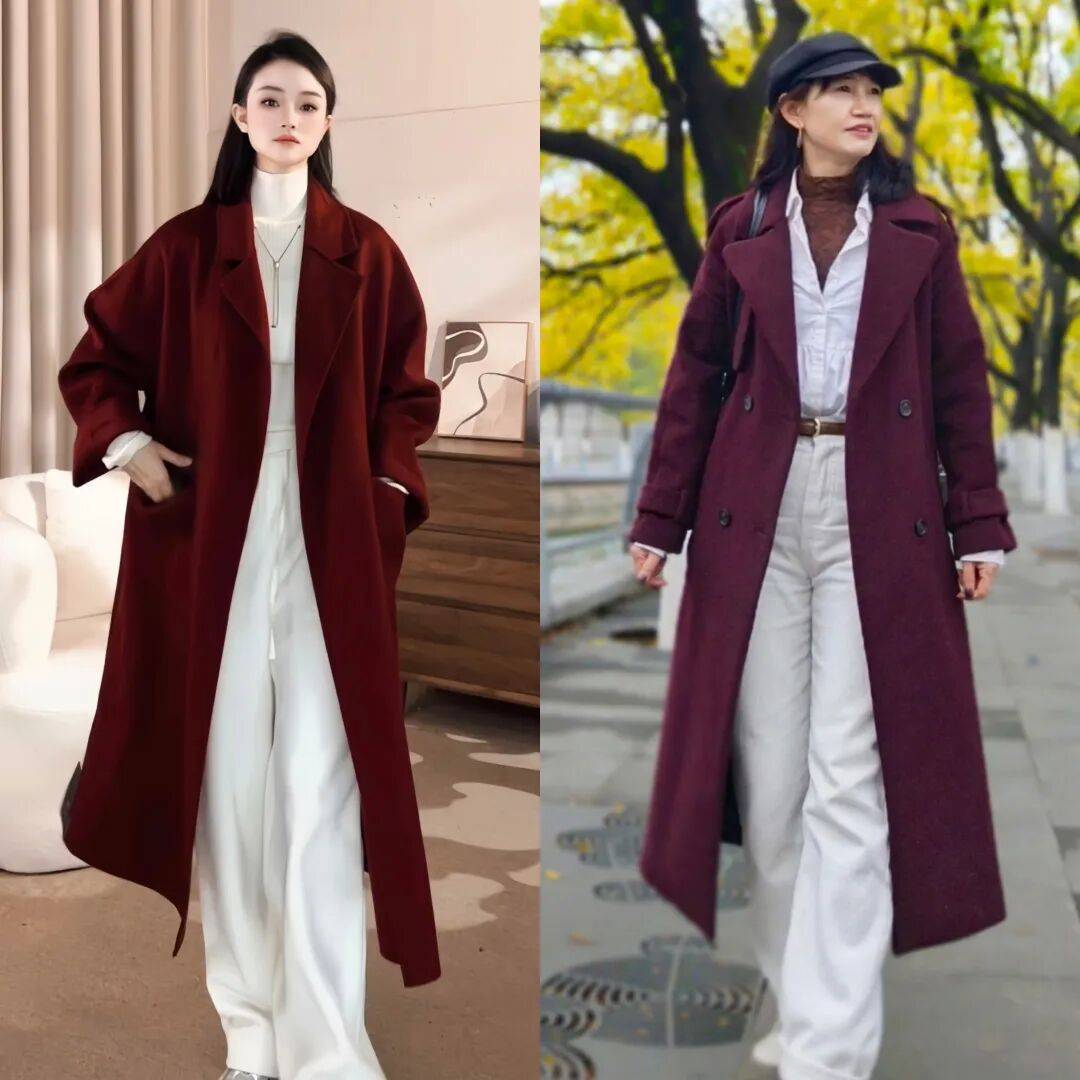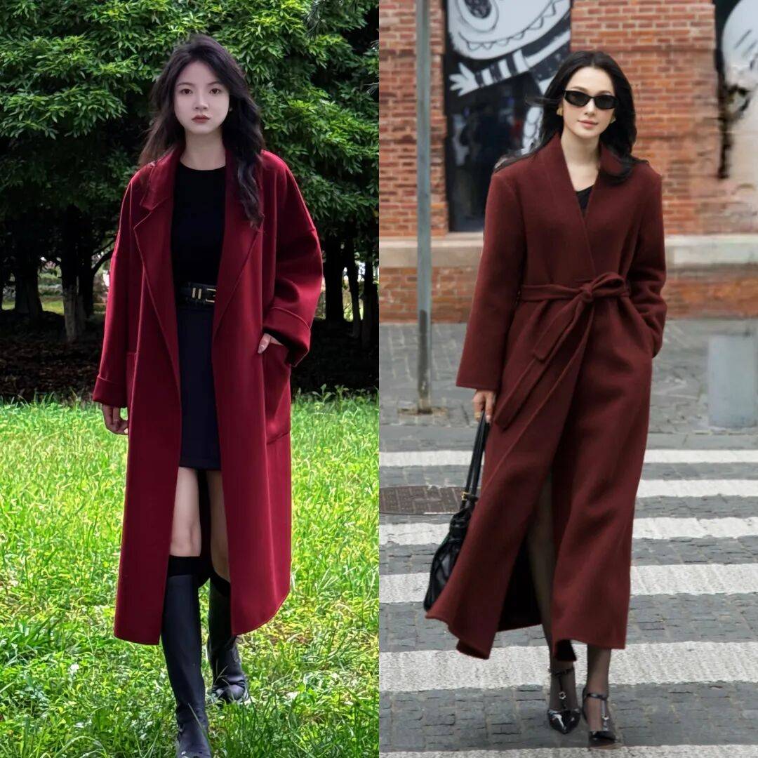 我个人觉得,安可拉红的大衣可比黑色大衣更有氛围感、更耐看。