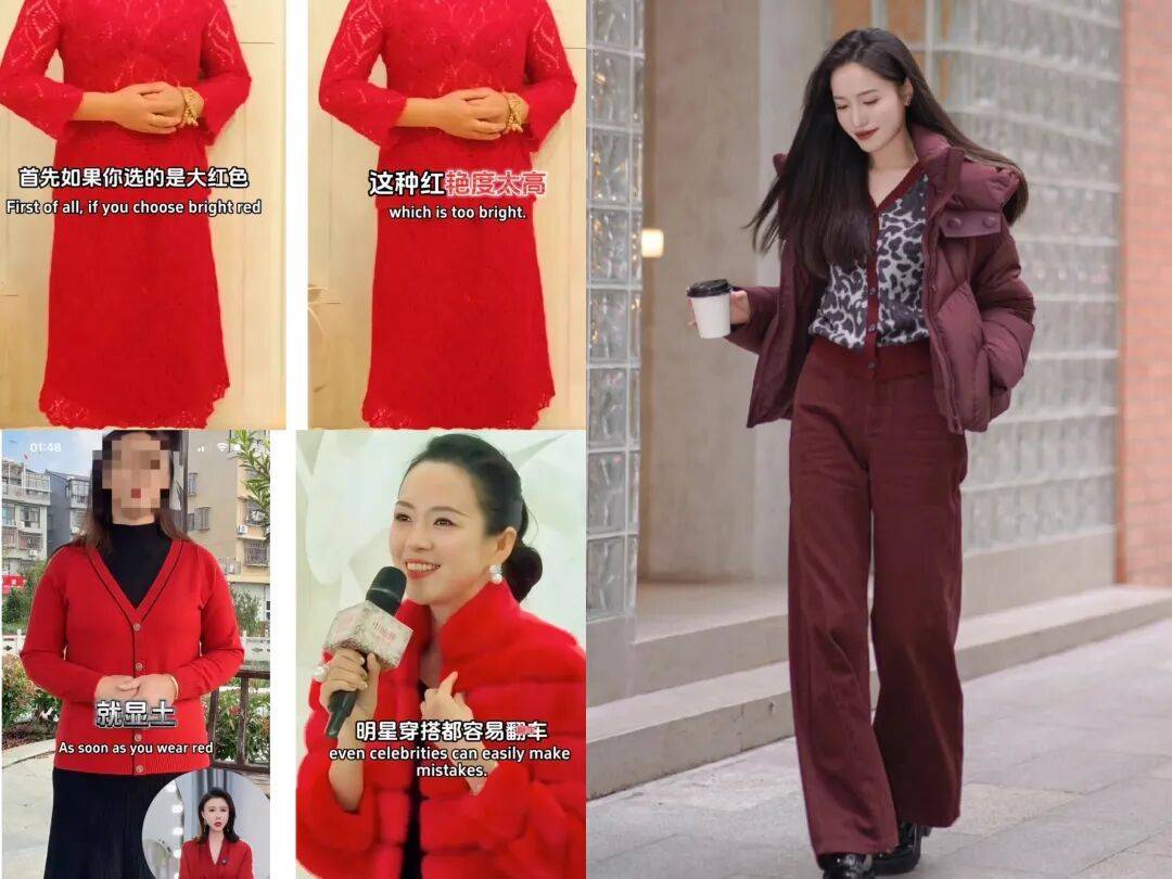 不过呢,我看到有些姐妹的红色搭配,有点俗气,问题就出现在没有选对红色。