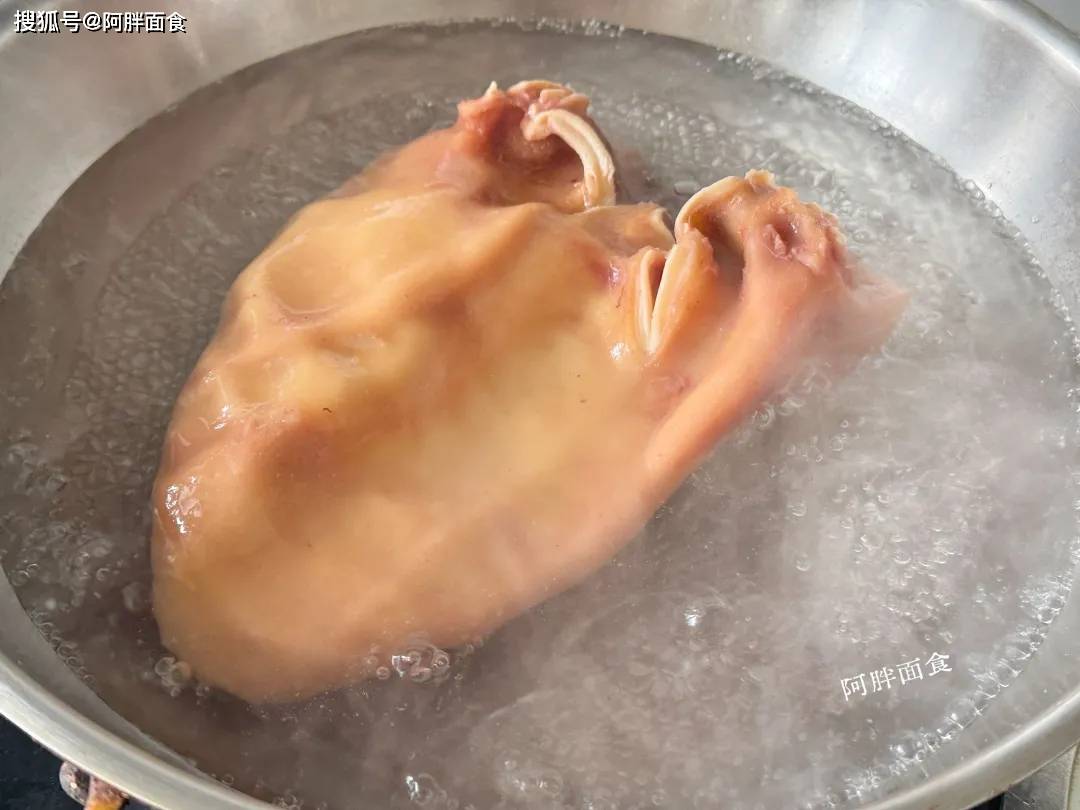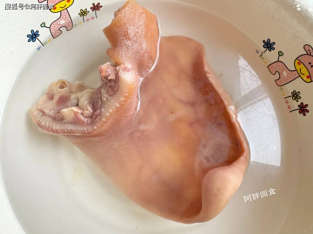 2、水开把猪耳朵放锅里煮个3分钟,高温杀菌消毒。咱也不知道,这块猪耳朵到咱手上,被多少人碰过,所以煮一煮更好。