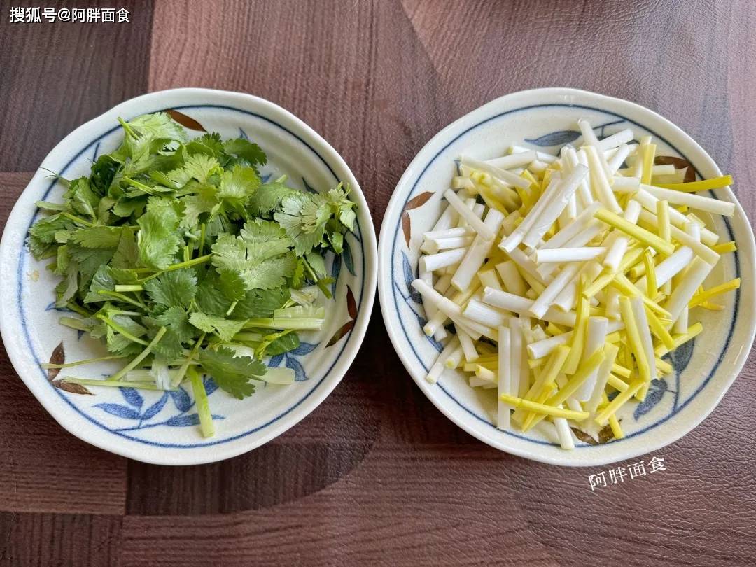 6、凉拌菜的万能搭子:香菜、蒜黄。准备一些切成段。这个是蒜黄,不是韭黄哦,南方的朋友们!