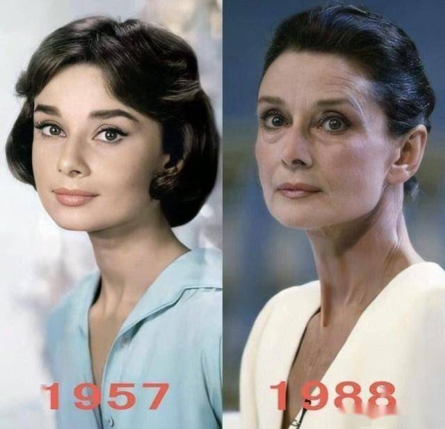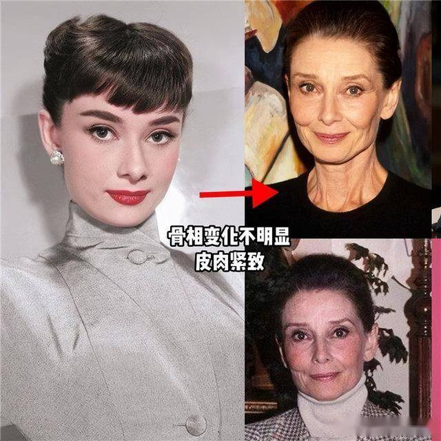 像赫本从年轻的时候到了之后,除了脸上有了皱纹,其他方面几乎没什么变化,最主要的原因就是她坚持运动控制身材,就算是老了也没有发腮,骨相特别地立体。