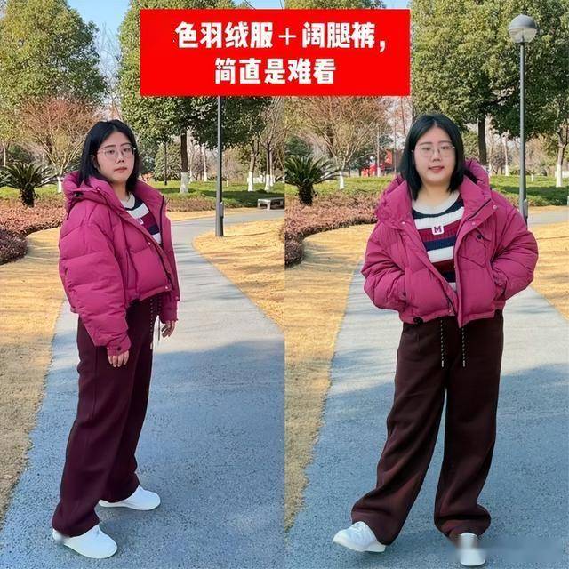 彩色系列的羽绒服,其实在新年期间的时候是不推荐大家将其运用的,因为不是属于基础的色系,所以在搭配起来的时候就很难将其驾驭,尤其羽绒服本身的款式状态是宽松的设计,那么搭配出来的效果就很容易让人感觉臃肿显胖,下半部分搭配的单品最好是属于非常极具个性感和时髦感的,但如果是传统的裤子几乎是完全又日常又土气又普通的感觉。