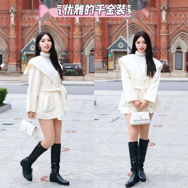 在今年冬季当中非常流行,而且对于身材状态几乎都没有任何限制的,就是千金贵气装。建议大家可以优先于选择搭配毛呢外搭,并且能够遮挡住臀胯部位,下半部分可以结合长筒靴又或者是短靴的系列,可以加入帽子作为配饰增强整体的气质美感。