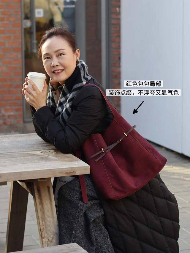 前面提到了冬天穿红色大衣会让人感受到浓浓的节日气息,只可惜并非所有人都愿意穿红色衣服。不妨事,准备红色的包包,照样可以拥有氛围感。