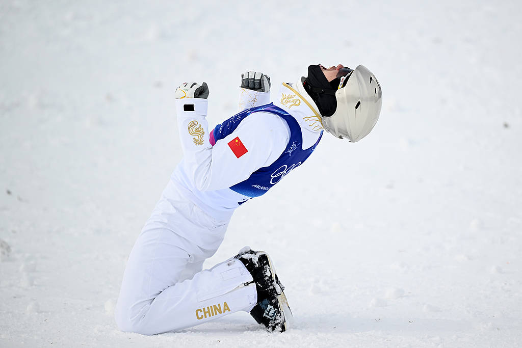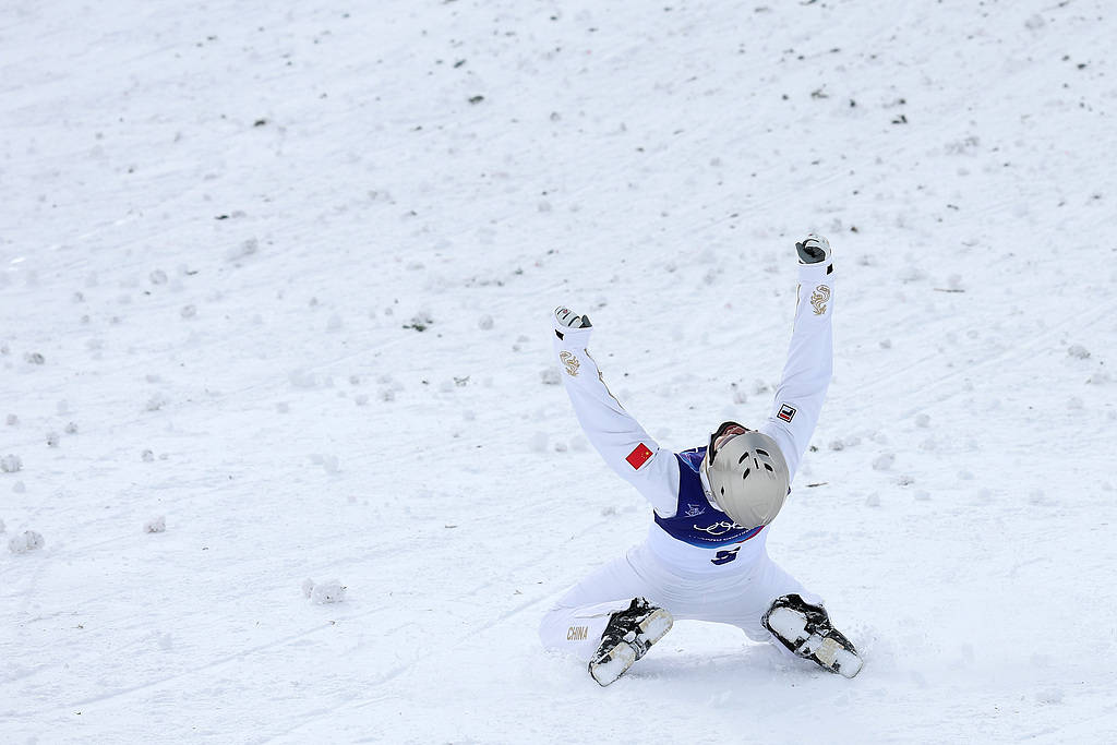 卫冕冠军齐广璞是第4顺位出征而选择难度系数5.000,即向后直体翻腾三周第一周720接第二周360接第三周360,不过空中翻腾有屈腿并且落地后背拍在雪面出现失误,起跳腾空、空中姿态和落地效果有效得分为5.2、8.2和2.8分,加权难度系数后得分是81.00分名列第6提前无缘奖牌导致卫冕梦碎。