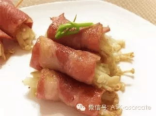 做法:将培根把洗干净的金针菇,香葱段卷起来,有牙签固定,摆在刷过油的烤盘上;烤箱预热200°,将做好的培根卷入烤箱烤15分钟,中间翻1、2次.烤好取出摆盘,随甜辣酱一起上桌,蘸酱,非常好吃。