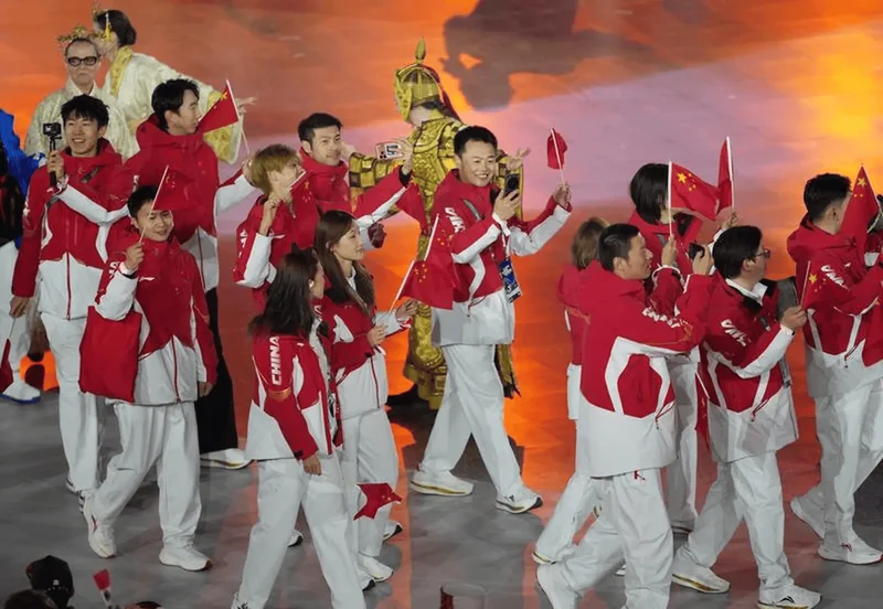 旗手之后,各代表团的运动员们在现场文艺表演的“映衬”下入场,以徐梦桃、宁忠岩为代表的中国体育健儿们挥舞着国旗、面带笑容步入场内。运动员入场并坐上看台后,闭幕式进入正式的文艺表演环节,节目围绕着歌颂运动员拼搏精神为主题一一呈现。闭幕式官方回顾短片,向每位拼搏努力、挥洒汗水的运动员致敬,其中出现了苏翊鸣的画面。