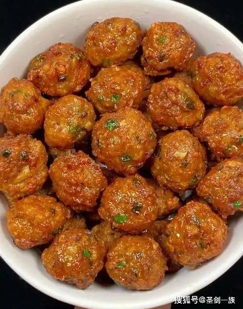 6. 用手将肉馅搓成大小均匀的丸子,放入油锅中,小火炸至表面金黄,捞出沥干油分。