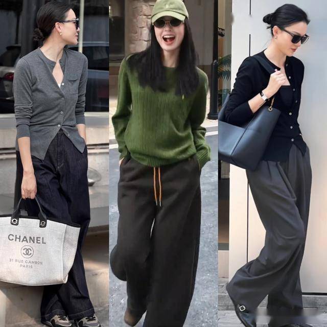 修身一些的针织开衫,会有一种细腻精致的女人味,显瘦的效果也非常好,可以配一条简约的西装阔腿裤,日常通勤很OK。 选择经典的黑色或是灰色针织开衫,搭配同色系的西装阔腿裤,高级感拉满,又显得低调温柔。
