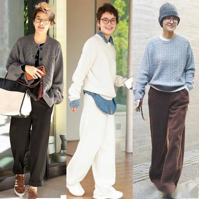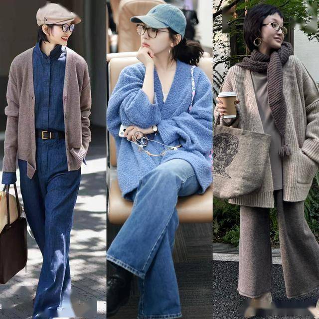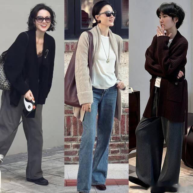 如果你喜欢大女人的风格,可以试试宽松版型的毛衣开衫,大廓形的设计更慵懒大气,可以配同色系的阔腿裤,简约高级又有气场。