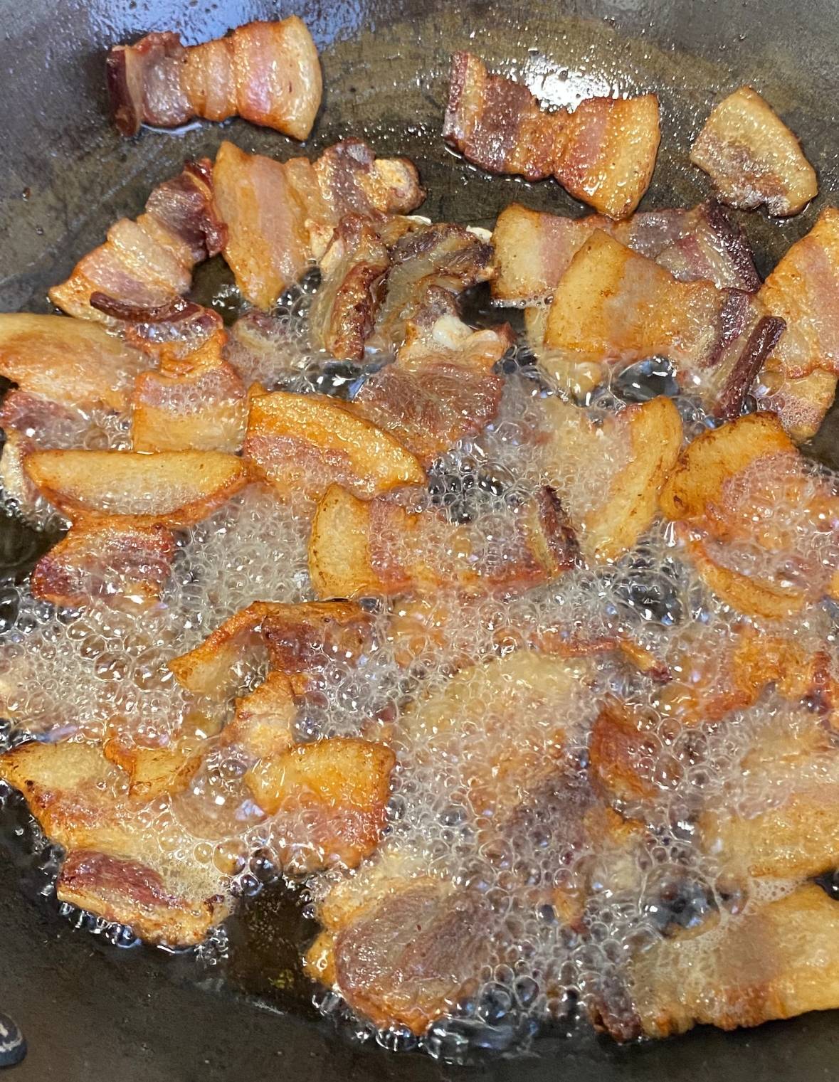 一切准备就绪,就可以开始炒制了。热锅凉油,放入切好的肉片。随着“滋滋”的声响,肉片在锅中迅速翻滚起来,油脂被慢慢煸出,肉片逐渐变得金黄卷曲,散发出阵阵诱人的香气。这时候的肉片,外酥里嫩,光是闻着味道,就让人食欲大增。
