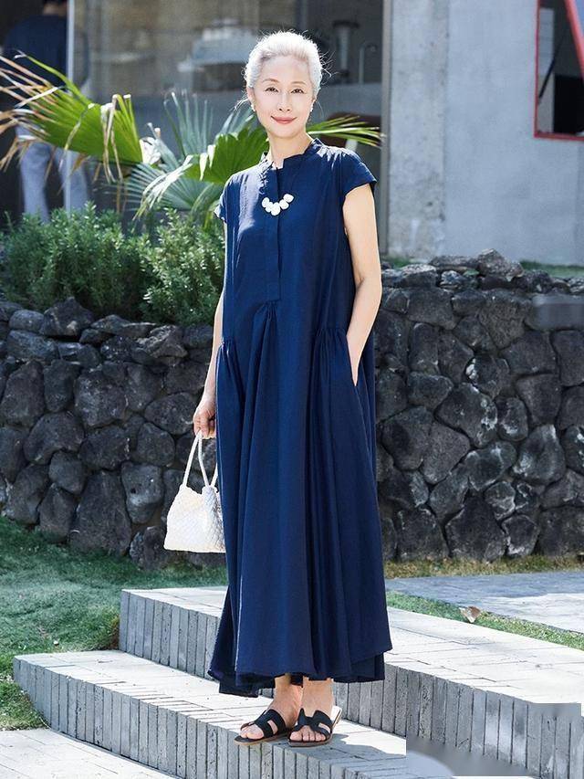 上了年纪又如何?与其穿老年装,不如换上禅意长裙,裙摆垂感十足,黑色简约干净,踩双拖鞋也好美。