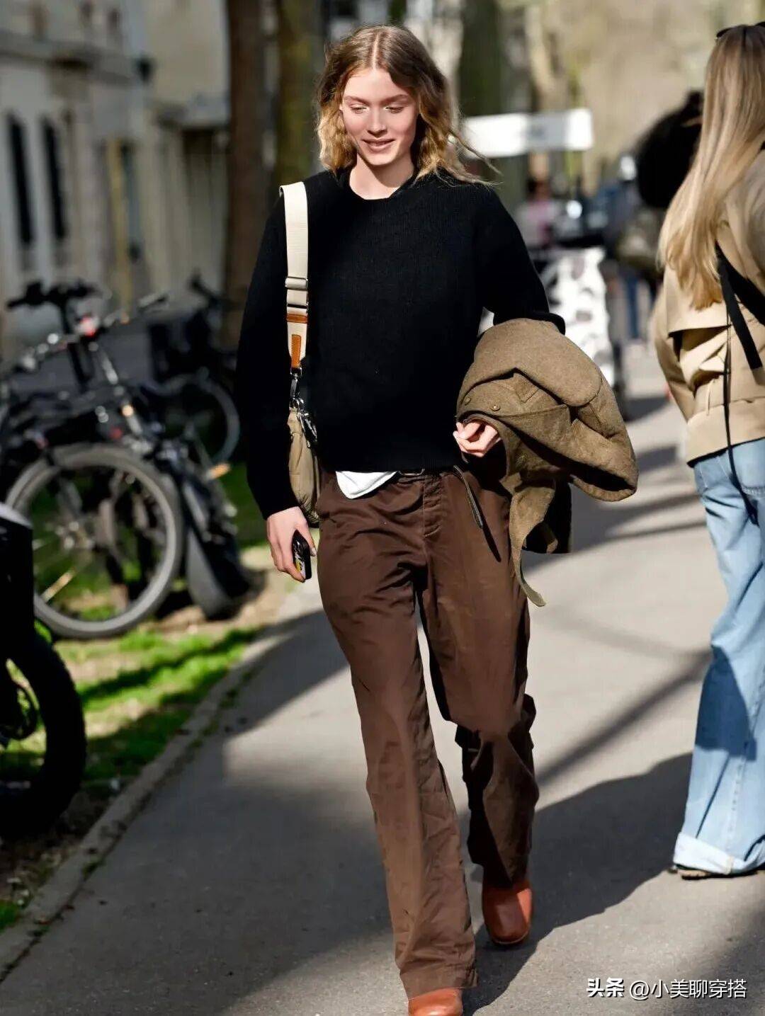 如果你喜欢可可露丽风格,可以准备一条灰粉色的阔腿裤,它是一种很优雅知性的粉,低调又高级,搭配咖色的上衣,配色非常时髦高级。