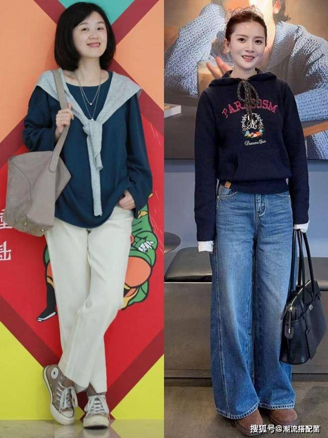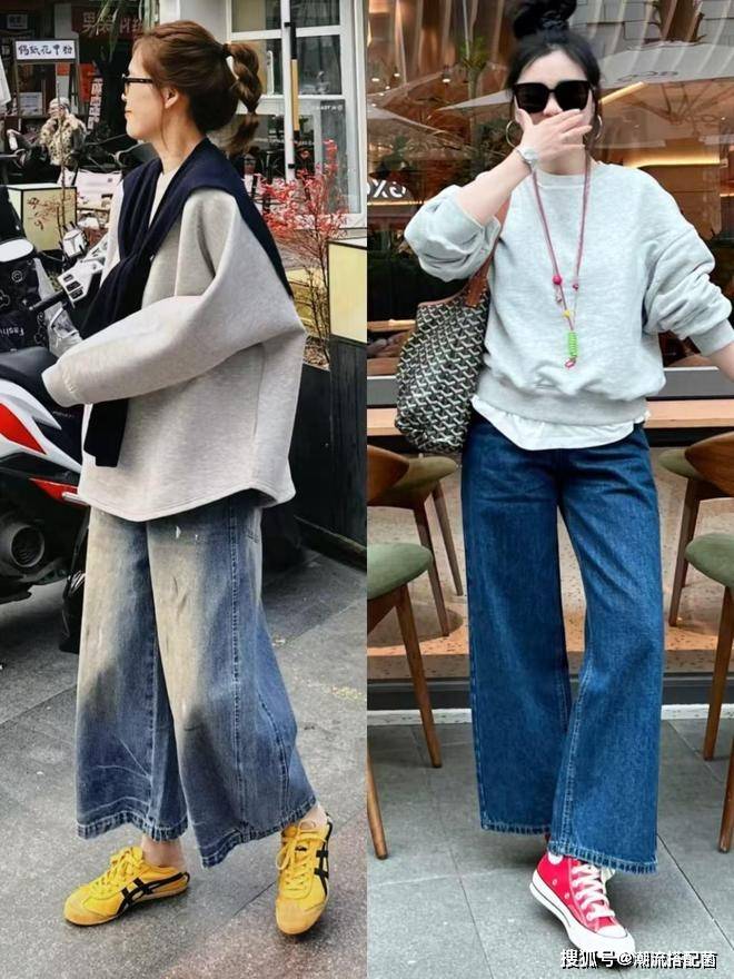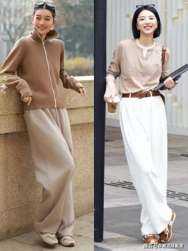卫衣配阔腿裤能轻松优化身材比例,秘诀就在于“三七分黄金分割”。短款卫衣巧妙地将腰线提升到肚脐以上5cm处,让视觉重心瞬间上移,而阔腿裤宽大的裤管形成纵向延伸效果,自然拉长腿部比例。特别是对小个子女生,这种比例重构术堪称显高秘籍。同时,对于微胖或梨型身材的女性,“上宽下宽”的组合恰好打造出一种纸片人视觉障眼法,整体松弛又不臃肿。