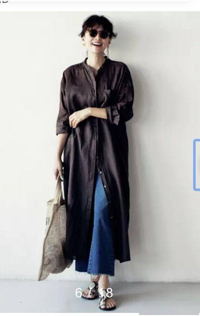 亚麻材质的衬衫连衣裙,自带松弛感。