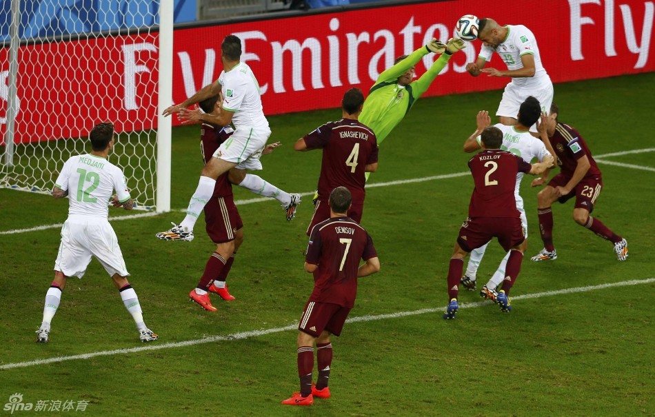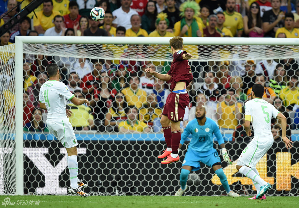 新浪体育讯 北京时间6月27日04:00(巴西当地时间26日17:00),2014世界杯H组末轮一场比赛在拜沙达竞技场展开角逐,阿尔及利亚1比1战平俄罗斯,科科林头槌破门一度让俄罗斯掌握出线权,但苏莱曼尼扳平比分令局面逆转。阿尔及利亚获小组第二成为第6支晋级淘汰赛的非洲球队,将对阵德国。
