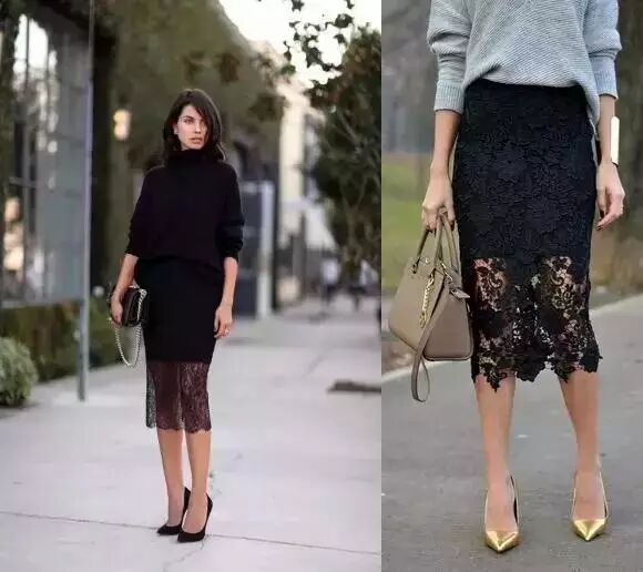 夏天很流行的蕾丝半身裙也不要收起来,接着用;配上浅口鞋,气质get