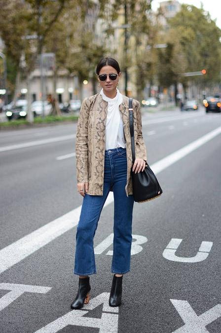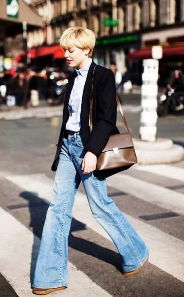 牛仔阔腿裤绝对是这类穿搭的最好选择!