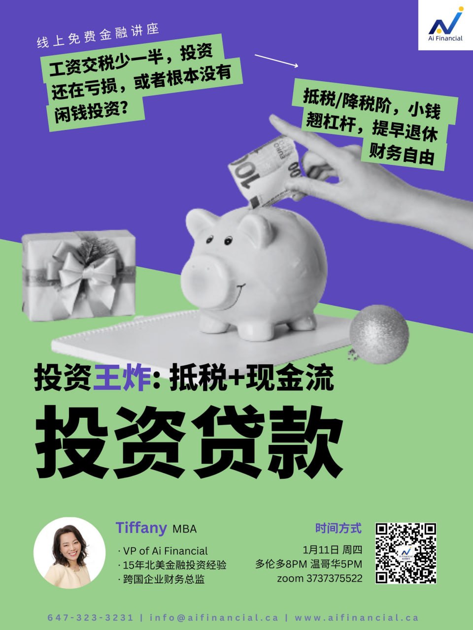 探索投资新视野!本周我们将为您介绍一种可抵税、拥有优越现金流的独特投资产品——投资贷款。不再为税收而烦恼,让投资贷款成为您财务规划的秘密武器! 解读税收优势 精明投资策略 探索投资方向 ZOOM ...
