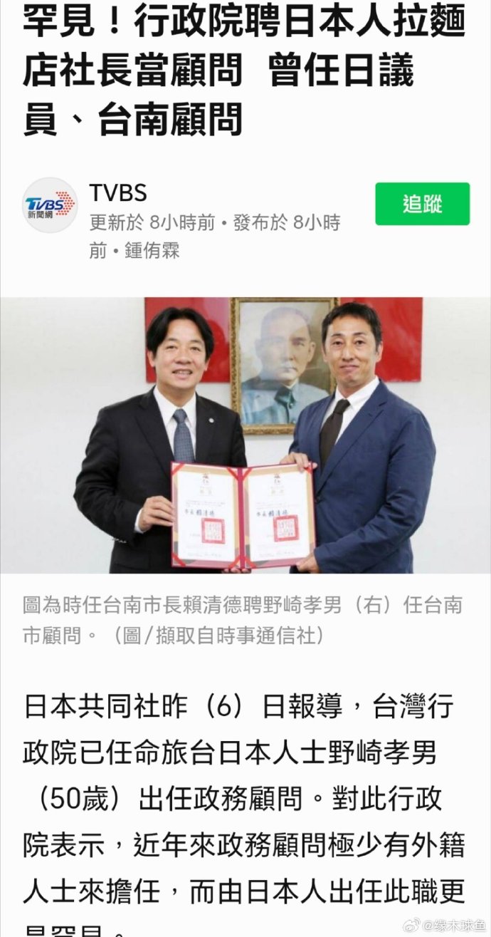 缘木球鱼 赖皮蛙尽然聘前日本医院担任政务顾问。 台湾省就是这样一点点地被民进党给卖掉了[摊手]
