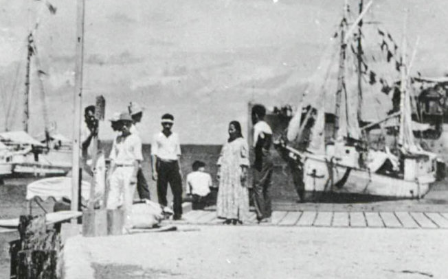 美国女性飞行先驱艾梅莉亚‧厄哈特1937年6月1日驾机环绕全球,回程途中失踪,但一张新发现的黑白照片中显示,坐在码头的女子相似厄哈特(中),左边男子看似努南。(路透)