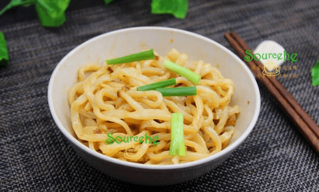 【第2种麻油凉拌面】劲道爽滑,简单美味。食材:手工面条、麻油、辣椒油、香葱、盐、生抽。做法:1.清水煮沸,放入面条,加少许盐,煮熟捞出,过冷水。2.用平底锅倒入少许油、麻油、盐、辣椒油、生抽煮沸,倒入面条碗里,香葱搅拌均匀。