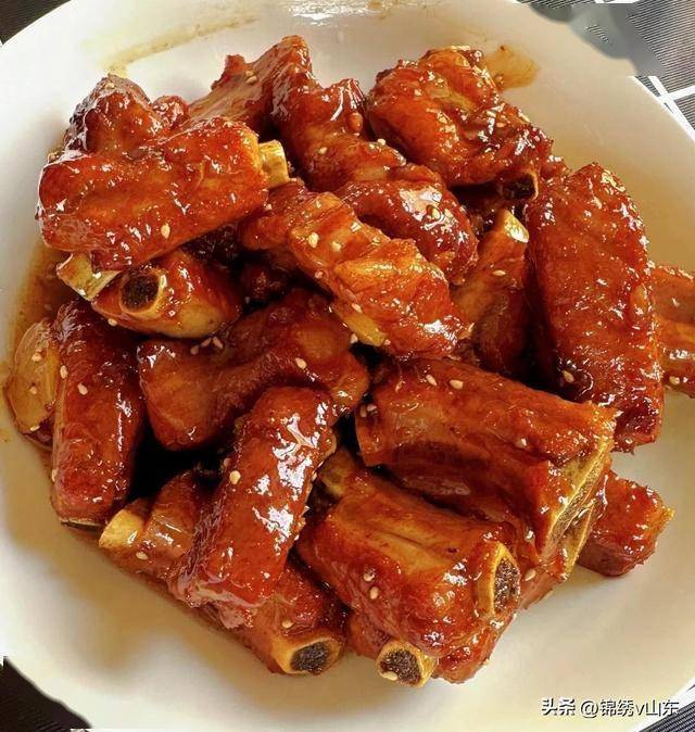 ④ 倒可乐没过排骨,大火煮开转小火炖1小时,收汁撒芝麻