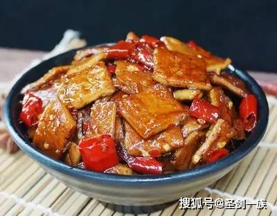 牛皮豆干、干辣椒、花椒、蒜末、辣椒面、孜然粉、白糖、盐、鸡精、食用油