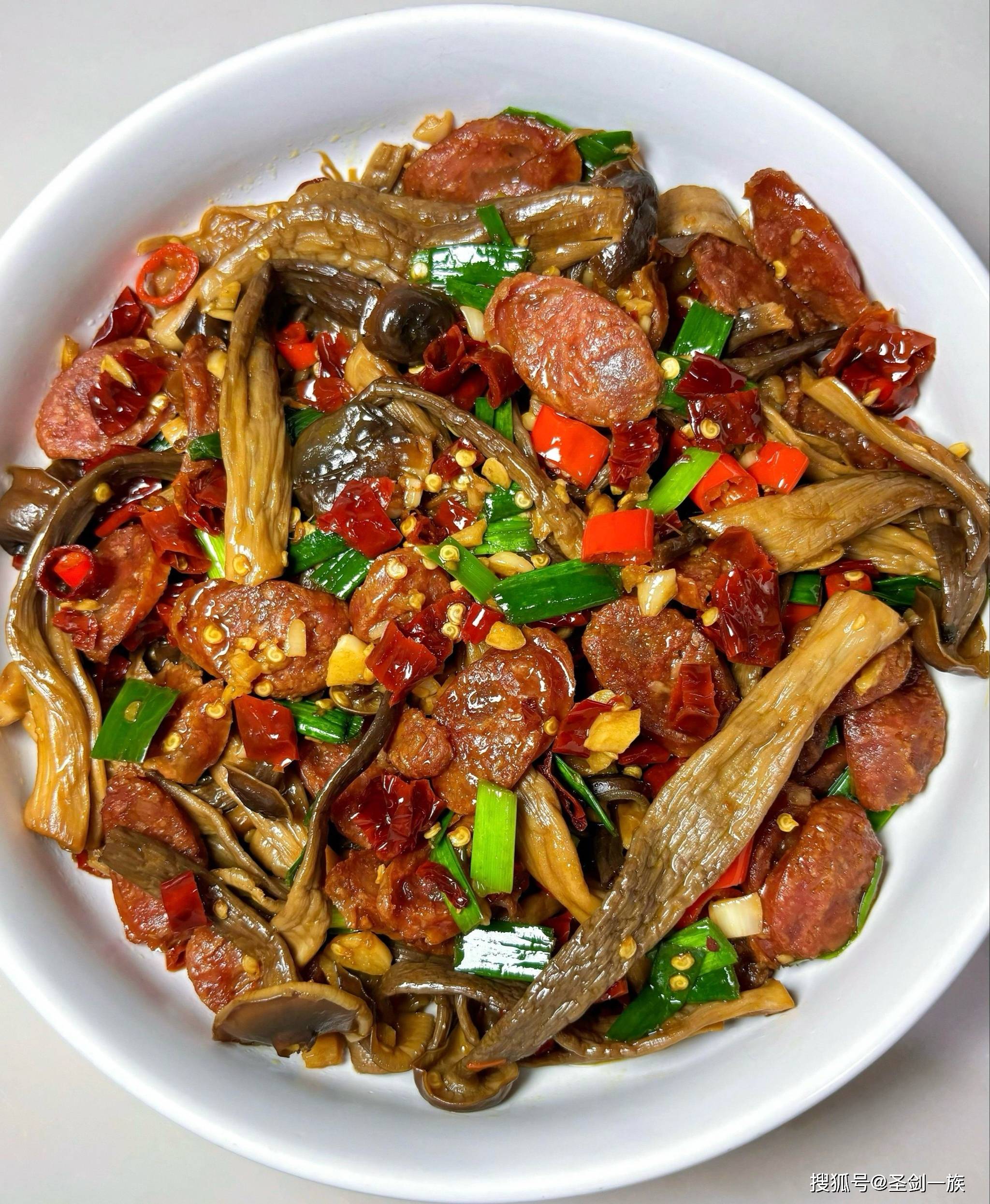 4. 加入鹿茸菇:将鹿茸菇段加入锅中,翻炒均匀,让蒜薹和鹿茸菇充分混合。