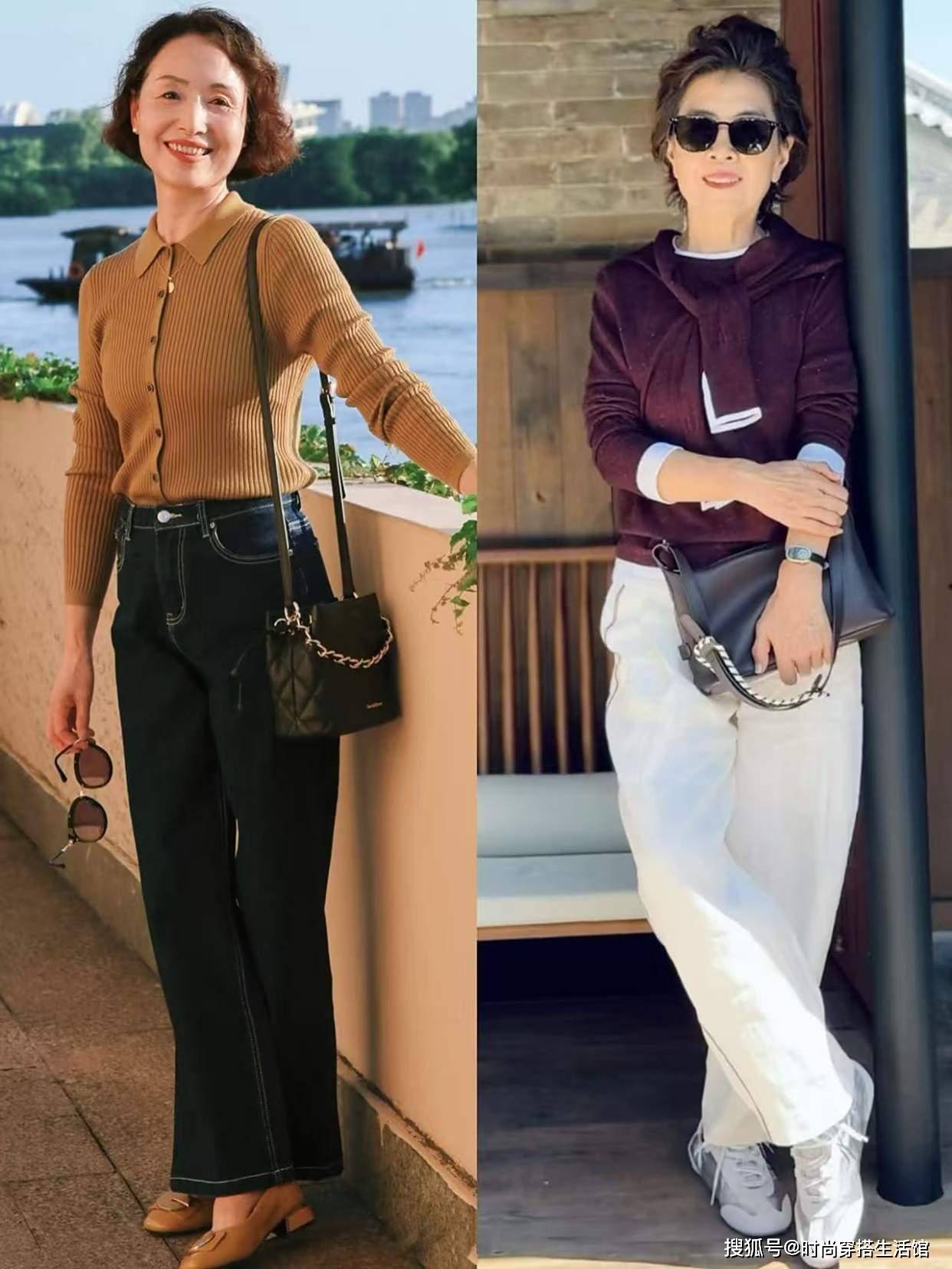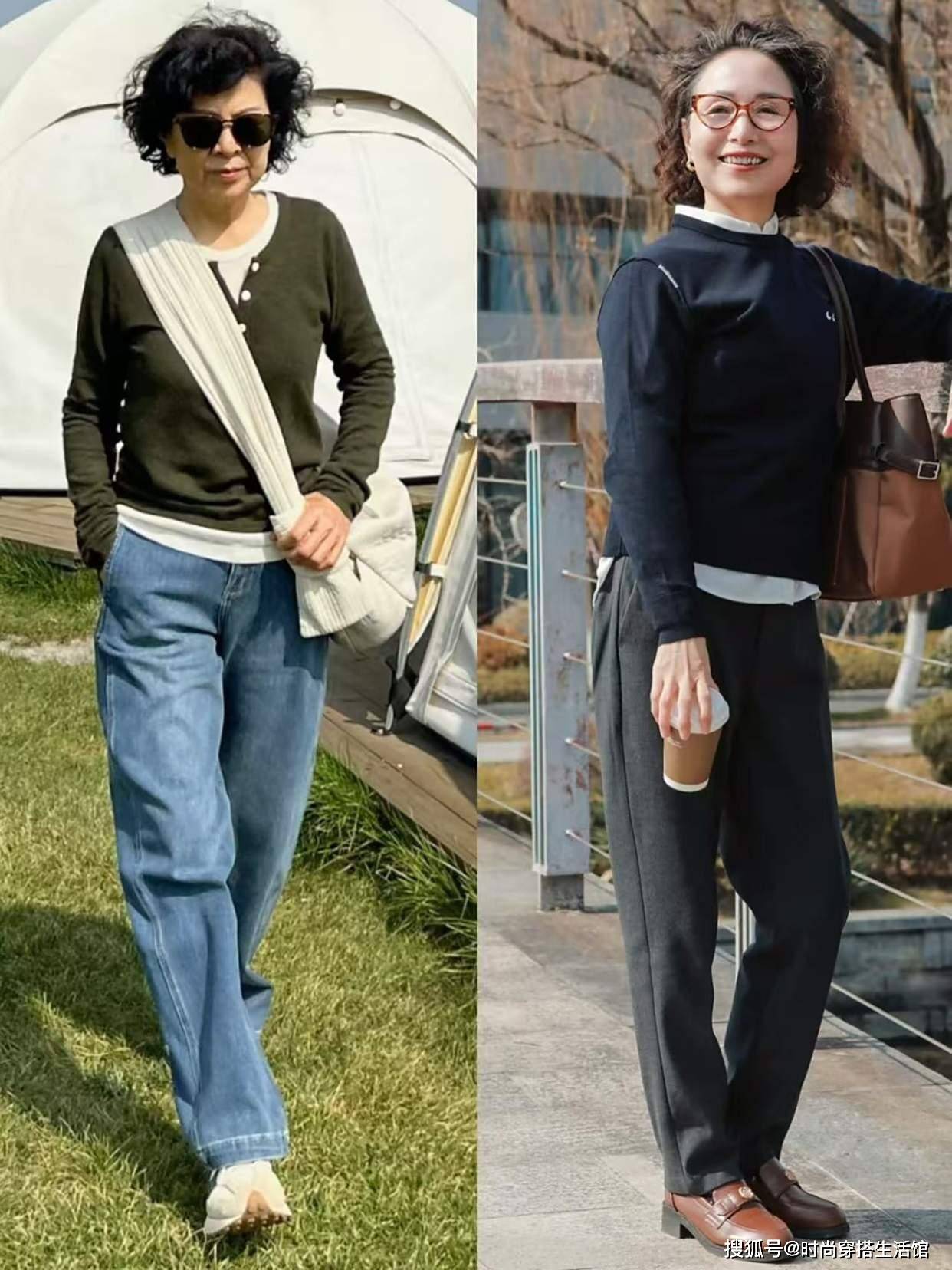 对于中年女性来说初秋的季节温度还没有那么低,那么我们就需要选择合适的秋季单品,像是秋季常见的针织衫,毕竟它的材质穿上后会更加的舒适和柔软,但很多人担心选择穿针织衫会显胖,那么可以选择合身或者宽松的版型,搭配上大领口的设计,像是V领和大方领的款式,不仅可以有效地露出脖子和锁骨,同时还能修饰脸型。