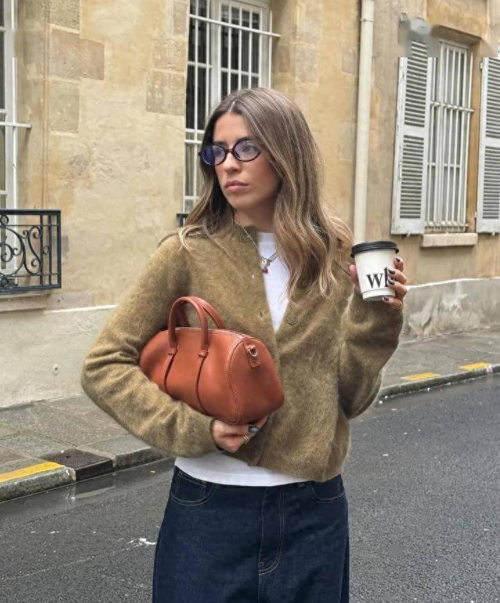 如果你觉得自己驾驭不了颜色太鲜艳的针织开衫,不如试试这一件米白色的,不得不夸一句,这个颜色也太温柔气质了。小短款的长度,对于个矮女生来说就是友好,下身搭配一条米色百褶半身长裙,不要觉得这种长裙穿起来压个子,其实并不会,因为它的垂坠感很佳,加上同色的组合,视觉上更显高挑了。
