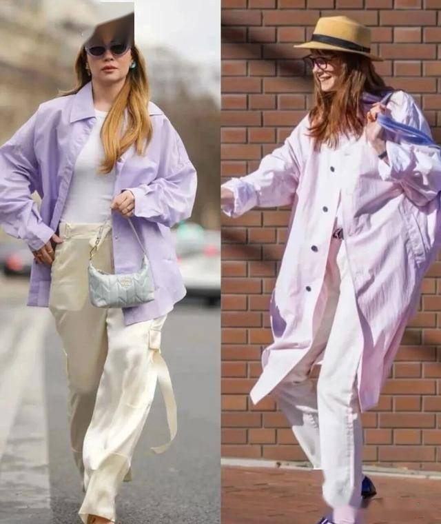 香芋紫色的衬衫,它带着清新的调调,偏冷调的颜色会很衬肤色,显白又清新,很有春日的氛围感,搭配白色阔腿裤,更增加了一抹清淡的氛围,很喜欢这样浅春系的风格。