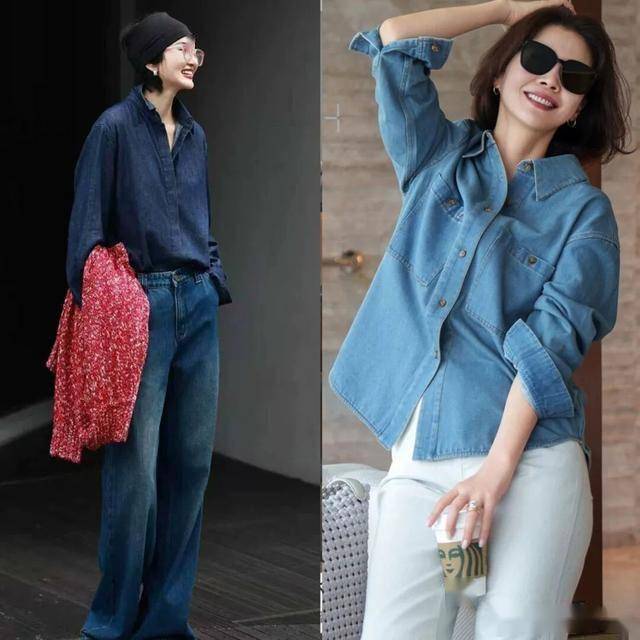 如果是微胖的女生,可以试试薄款的牛仔衬衫,宽松一些更遮肉显瘦,搭配同色系的牛仔阔腿裤,整体营造出视觉顺延感,更显高显瘦了,又可以穿出不费力的时髦。