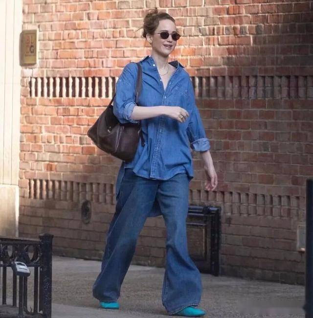 童真蓝色的衬衫,它有一种盐系少年感,配上牛仔阔腿裤,便是很小清新的样子,显白又减龄。