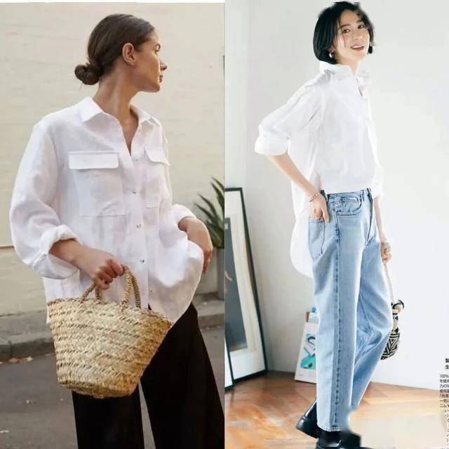 如果你是职场女生,既要穿出精英感,又不想太过刻板,那么宽松的白衬衫搭配阔腿裤,会完美彰显出你优雅大气的魅力,同时又很去班味。