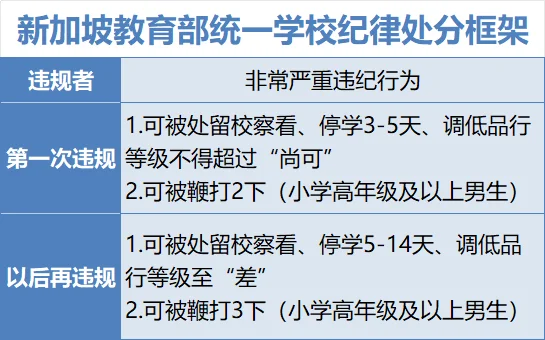 信息来源:教育部如果是非常严重的违纪行为,第一次违规者可被处留校察看、停学3-5天、调低品行等级不得超过“尚可”、最多打2鞭。第二次或以后再犯的违规者,停学时间延长至5-14天、品行等级下调至“差”、最多打3鞭。