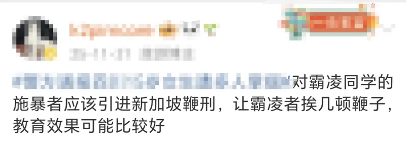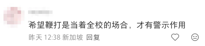 还有网友表示,希望公开鞭打,这样才能起到足够的警示作用,震慑其他潜在的霸凌者。