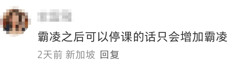 06 新加坡校园霸凌新规引热议 中国网友:建议引进鞭刑 新规公布后,不仅新加坡本地家长热议,中国网友也纷纷参与讨论,支持与质疑并存。 疑问1:男生霸凌可以打鞭,女生霸凌该怎么处理? 这是最受争议的一点,目前教育部新规中,打鞭仅针对小学高年级以上男生,女生的处罚以停学、降级、辅导为主。 不少网友建议,应针对女生制定更有针对性的处罚措施,避免“双重标准”。