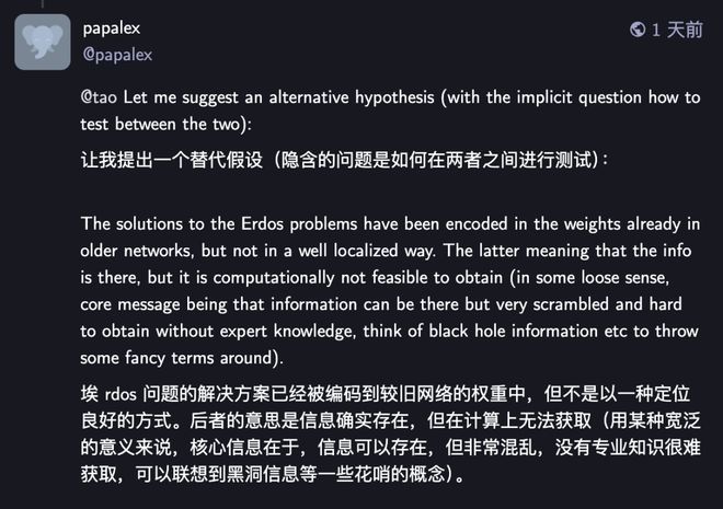 在相关讨论中,有一位网友提出了一个玄幻且精准假设,甚至被陶哲轩的读者们热议:「信息黑洞」。