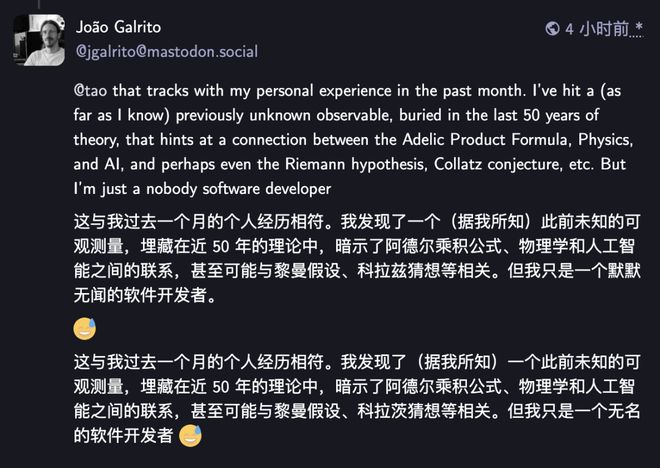 在陶哲轩这篇内容的评论区里,有一个网友留言: