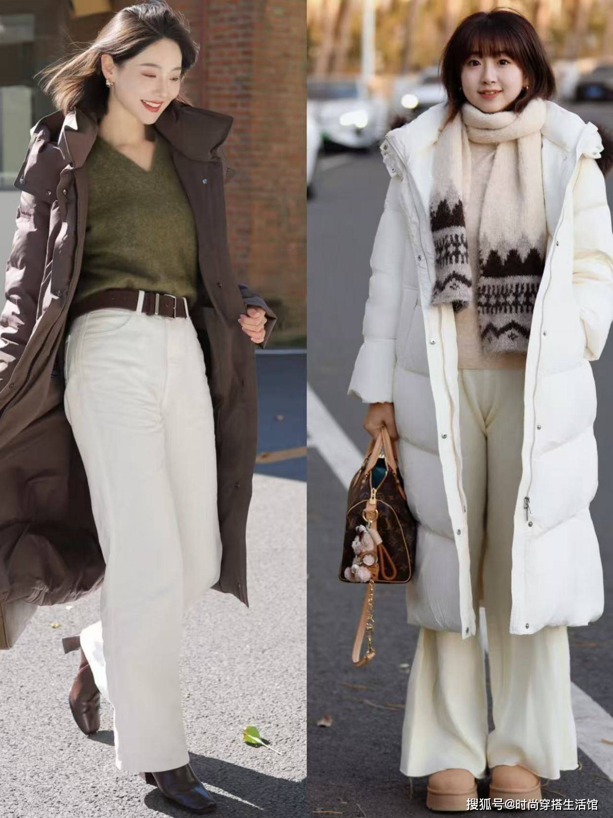 寒冷的冬天我们还可以选择穿长羽绒服和直筒裤,主要是因为直筒裤的版型是直上直下的款式设计,对于腿部的包容性会更强,完全不用担心会挑剔年龄和人群,H型的版型裁剪能够完美的强化双腿的纵向比例,不管是选择搭配长羽绒服还是长大衣完全不用担心会压缩上半身的比例,能衬得双腿更加修长,更加保暖和显高。