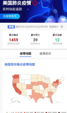 美国针对冠状病毒的防御措施遭到破坏。根据疾病控制中心的数据,截至13日6时,随着类似流感的病毒继续在美国蔓延,美国的COVID-19确诊病例已达1459例,死亡39例。该病毒目前在至少35个州和哥伦比亚特区存在。 ...