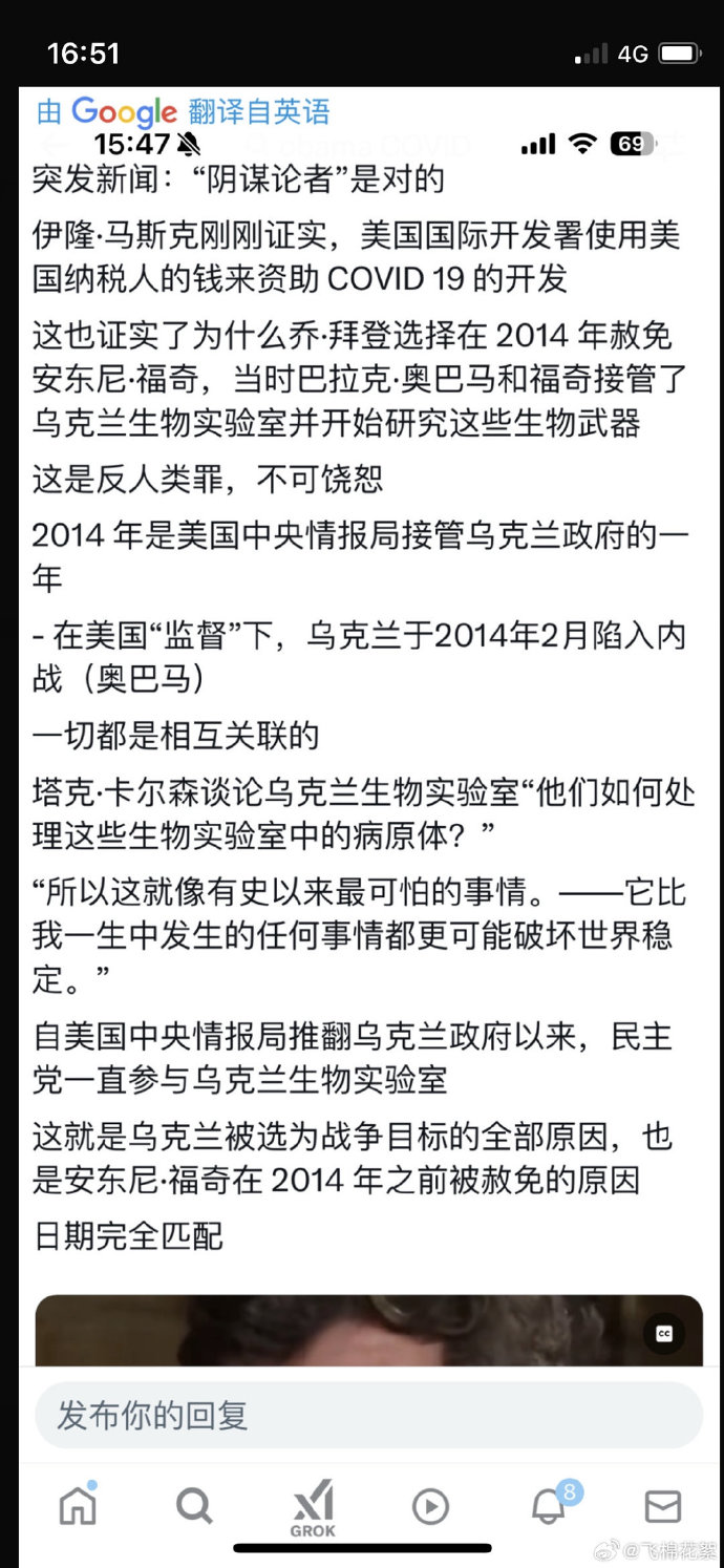飞棉花絮 伊隆·马斯克刚刚证实,美国国际开发署使用美国纳税人的钱来资助COVID 19的开发 这也证实了为什么乔·拜登选择在2014年赦免安东尼·福奇,当时巴拉克·奥巴马和福奇接管了乌克兰生物实验室并开始研究这 ...