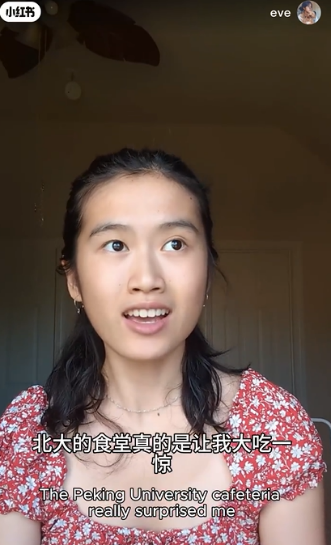 对于一个在美国郊区长大的孩子来说,Eve坦言自己从小在学校吃的食堂既差又贵,来到北大后,她被七八个食堂的饭菜美味又实惠震惊了。校园里到处都是可扫码使用的共享单车,出行非常方便。