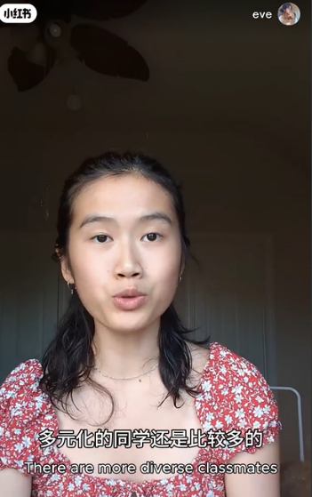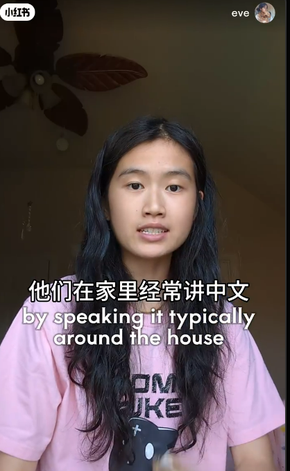 Eve说,她们家在家里和父母、长辈一直用中文沟通外;除此之外,她从幼儿园到五年级期间,每天学一小时的中文,五年级之后,就一直坚持自学中文。正是这种长期的付出,才能让她有机会就读北大。