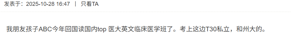 最近,我在华人论坛上看到这样一则帖子:一位华人家长,把自己的ABC娃送回国内大学读本科了。